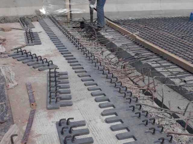 隨著我國交通運(yùn)輸事業(yè)的迅猛發(fā)展,橋梁作為交通線中的重要組成部分,其數(shù)量的增多、規(guī)模的擴(kuò)大更為明顯,而橋梁組成之一的伸縮裝置,用量也越來越大,使用范圍也越來越廣,形式也越來越多了。橋梁伸縮縫問題現(xiàn)在仍處于探索研究中,它對(duì)公路車道的平整度影響較大。為了改善路面與橋面相接處的平整度,一方面應(yīng)當(dāng)加大橋梁的聯(lián)孔長度以減少伸縮縫的數(shù)量,另一方面要不斷改進(jìn)伸縮縫的型式、材料以及設(shè)計(jì)和施工質(zhì)量。