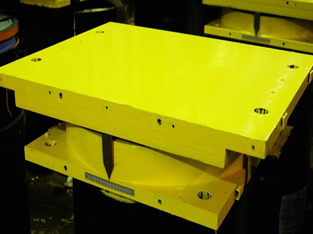 盆式支座的工作原理是利用半封閉鋼制盆腔內(nèi)的彈性橡膠塊,在三向受力狀態(tài)下具有流體的性質(zhì),來(lái)實(shí)現(xiàn)上部結(jié)構(gòu)的轉(zhuǎn)動(dòng);同時(shí)依靠中間鋼板上的聚四氟乙烯板與上座板上的不銹鋼板之間的低摩擦系數(shù)來(lái)實(shí)現(xiàn)上部結(jié)構(gòu)的水平位移。從實(shí)驗(yàn)的數(shù)據(jù)來(lái)看,橡膠處于三向約束狀態(tài)時(shí)的抗壓彈性模量為5×104kg/cm2,比無(wú)側(cè)向約束的抗壓彈性模量增大近20倍,因而支座承載能力大大提高,解決了普通橡膠支座承載能力的局限。所以盆式支座是能滿足大的支承反力,大的水平位移,大的轉(zhuǎn)角要求的新型產(chǎn)品。