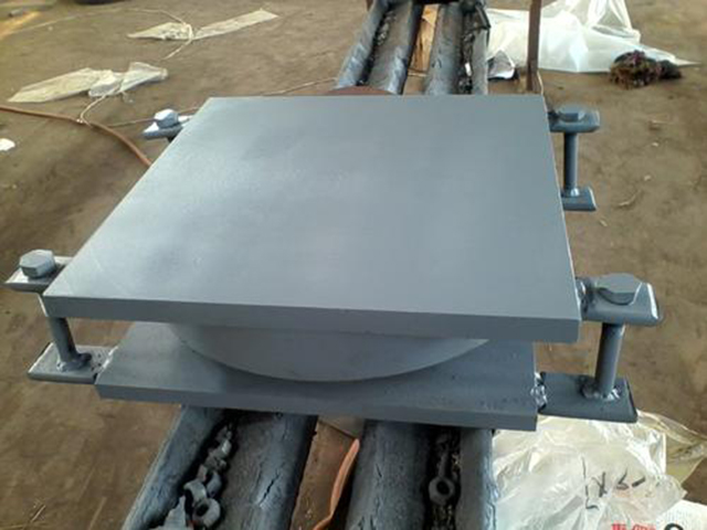 球型支座是由上支座板、下支座板、凸形中間板及兩塊不同形狀的聚四氟乙烯板組成。下支座板中間為一凹形球面,同凸形中間板相對(duì)應(yīng),兩者之間襯有一弧形四氟板,通過(guò)球面與之滑動(dòng)來(lái)滿(mǎn)足梁端的轉(zhuǎn)動(dòng);上座板上的不銹鋼板與中間鋼板上的另一四氟板組成第二滑動(dòng)面,完成梁體因溫差諸多原因所產(chǎn)生的伸縮位移。