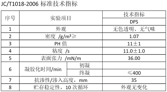 FMC-DPS永凝液防水劑執(zhí)行中華人民共和國(guó)建材行業(yè)JC/T1018-2006標(biāo)準(zhǔn),符合《界面滲透型防水涂料質(zhì)量檢驗(yàn)評(píng)定標(biāo)準(zhǔn)》DBJ01-54-2001技術(shù)標(biāo)準(zhǔn)。