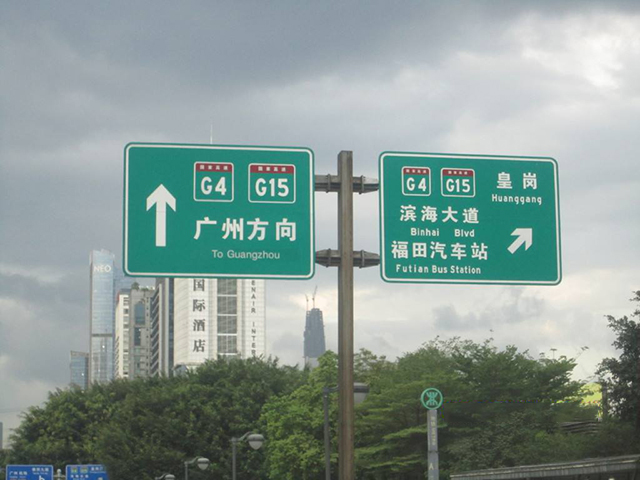 公路交通:公路里程指示牌、路口(立交橋)線路指示牌、提醒指示牌、警告指示牌等。