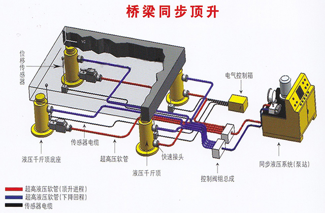 橋梁頂升即是在原橋臺(tái)附近開(kāi)挖基坑澆筑臨時(shí)砼作為頂升支架的基礎(chǔ),頂升支架采用無(wú)縫鋼管,無(wú)縫鋼管加工高度根據(jù)現(xiàn)場(chǎng)情況實(shí)測(cè)高度進(jìn)行加工,保證同軸無(wú)縫鋼管上部放置工字梁面處于同一高度,鋼管上放置頂升用千斤頂,千斤頂上放置工字梁作為分配梁與梁底之間用組合鋼楔緊密接觸。并在橋臺(tái)或墩柱外側(cè)安裝防位移裝置(高度根據(jù)現(xiàn)場(chǎng)實(shí)際情況而定)。頂?shù)轿缓舐淞簤|好臨時(shí)支撐柱。在原橋臺(tái)、墩上進(jìn)行支座墊石放樣,鑿除埋設(shè)支座墊石基槽并打磨平整,調(diào)制環(huán)氧砂漿安放支座墊石,對(duì)支座墊石進(jìn)行焊接,然后安放橡膠支座并找平、落梁。